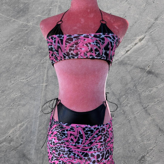 5 piece set - Choker, Mesh bandeau top, String bikini top, Mesh mini skirt, Low/mid string bottoms