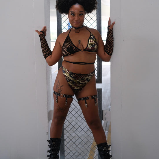 Model Size: First Model - Low Waisted Bottoms, Size Small, Second Model - High Waisted Bottoms, Large Top, Medium Bottom