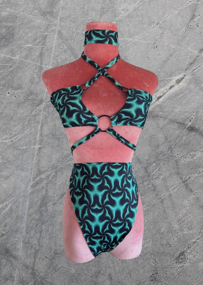 3 piece set - Choker, Top & High waisted bottoms
